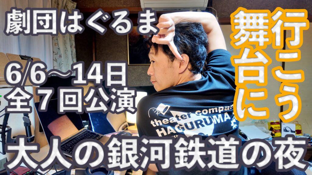 take2worksのYouTubeでは去年、舞台を共にした仲間の劇団はぐるま、舞台『大人の銀河鉄道の夜』の応援動画を配信しています。 岐阜市にある「御浪町ビルホール3階」で「楽しい!」気持ちになれる舞台へとあなたをご招 … 続きを読む 劇団はぐるま、舞台『大人の銀河鉄道の夜』チケット予約販売中