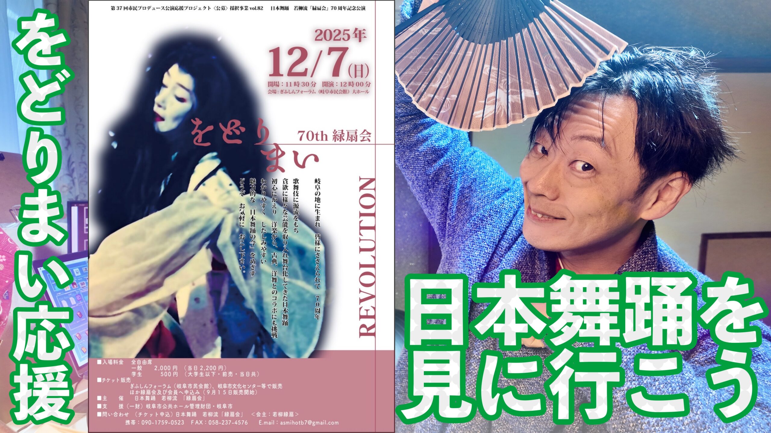 take2worksのYouTubeでは2025/12/07(日)に日本舞踊の舞台を観に行く竹馬タケルが岐阜県の日本舞踊を応援動画を配信しています。