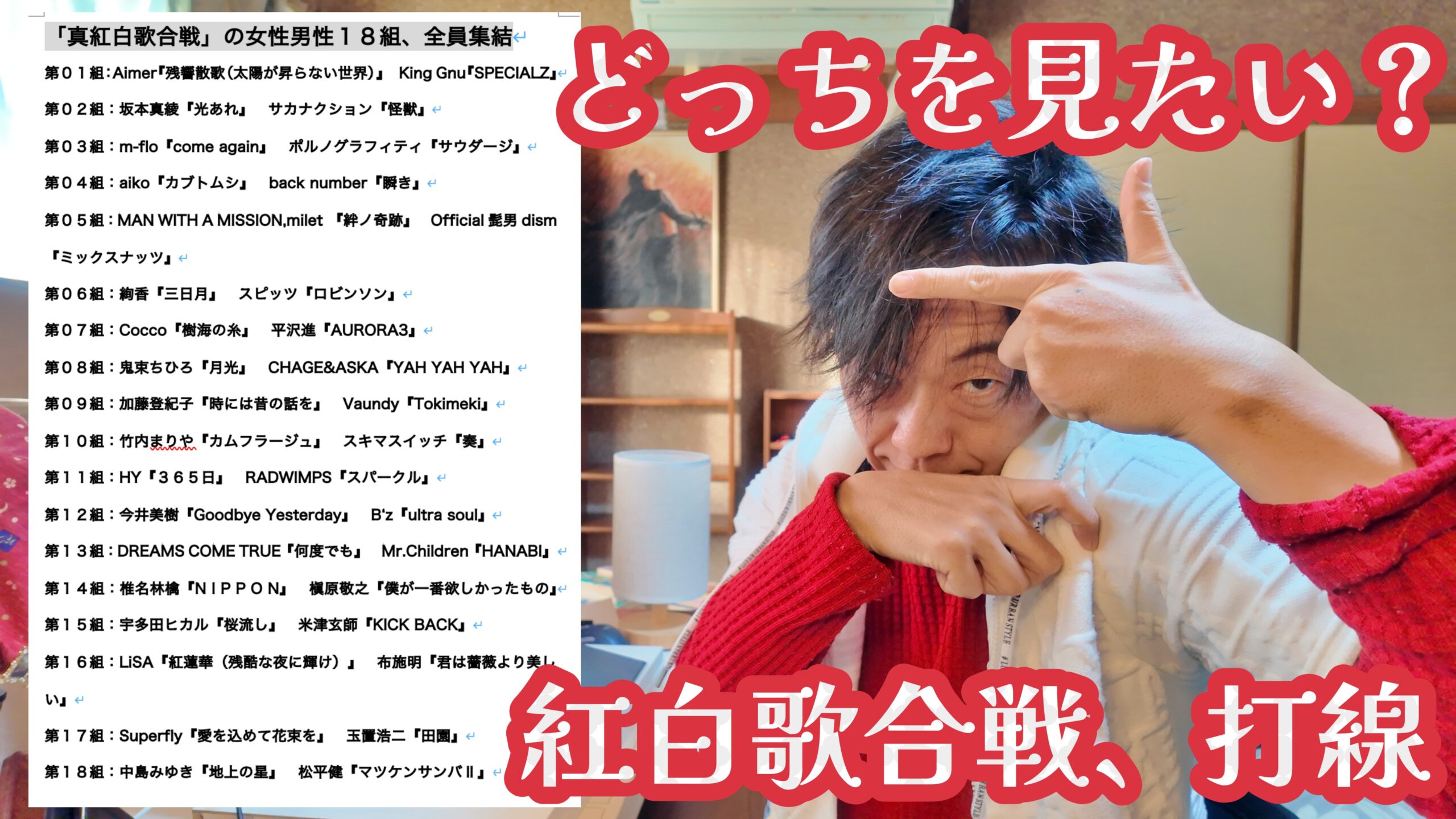『【年末】真紅白歌合戦、参加歌手18組を組んでみたから選考基準と見たい方を選んでください』を今すぐチェック⬆︎